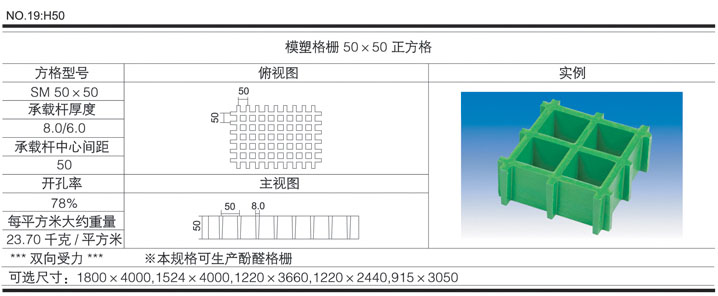 玻璃鋼格柵 >> 模塑類(lèi) >> H50×50×50正方格