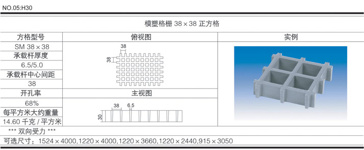玻璃鋼格柵 >> 模塑類 >> H30×38×38正方格